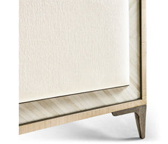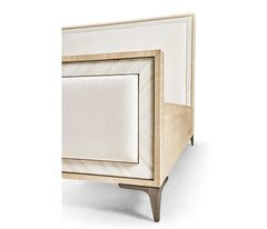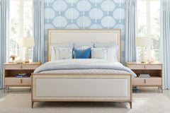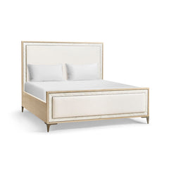 Introducing the Tideline Bone & Linen Upholstered Bed, a true masterpiece from Jonathan Charles. Made with sustainably harvested materials and flawless craftsmanship, this bed features a stunning bone inlay framed with stainless steel banding in a satin white brass finish. The performance linen-blend upholstery adds a touch of elegance, while custom cast stainless steel feet give it a modern and sophisticated edge. Transform any bedroom into a luxurious haven with Tideline.