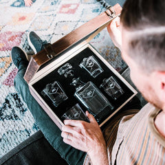 This engraved whiskey decanter set is the perfect men’s gift. Personalized with the name of your choice, this custom whiskey decanter and matching glasses will be displayed with pride for years to come. It’s a great gift for groomsmen, boyfriends, husbands and fathers alike.