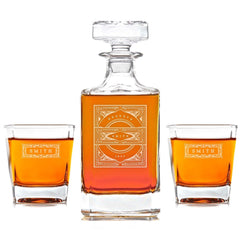 This engraved whiskey decanter set is the perfect men’s gift. Personalized with the name of your choice, this custom whiskey decanter and matching glasses will be displayed with pride for years to come. It’s a great gift for groomsmen, boyfriends, husbands and fathers alike.